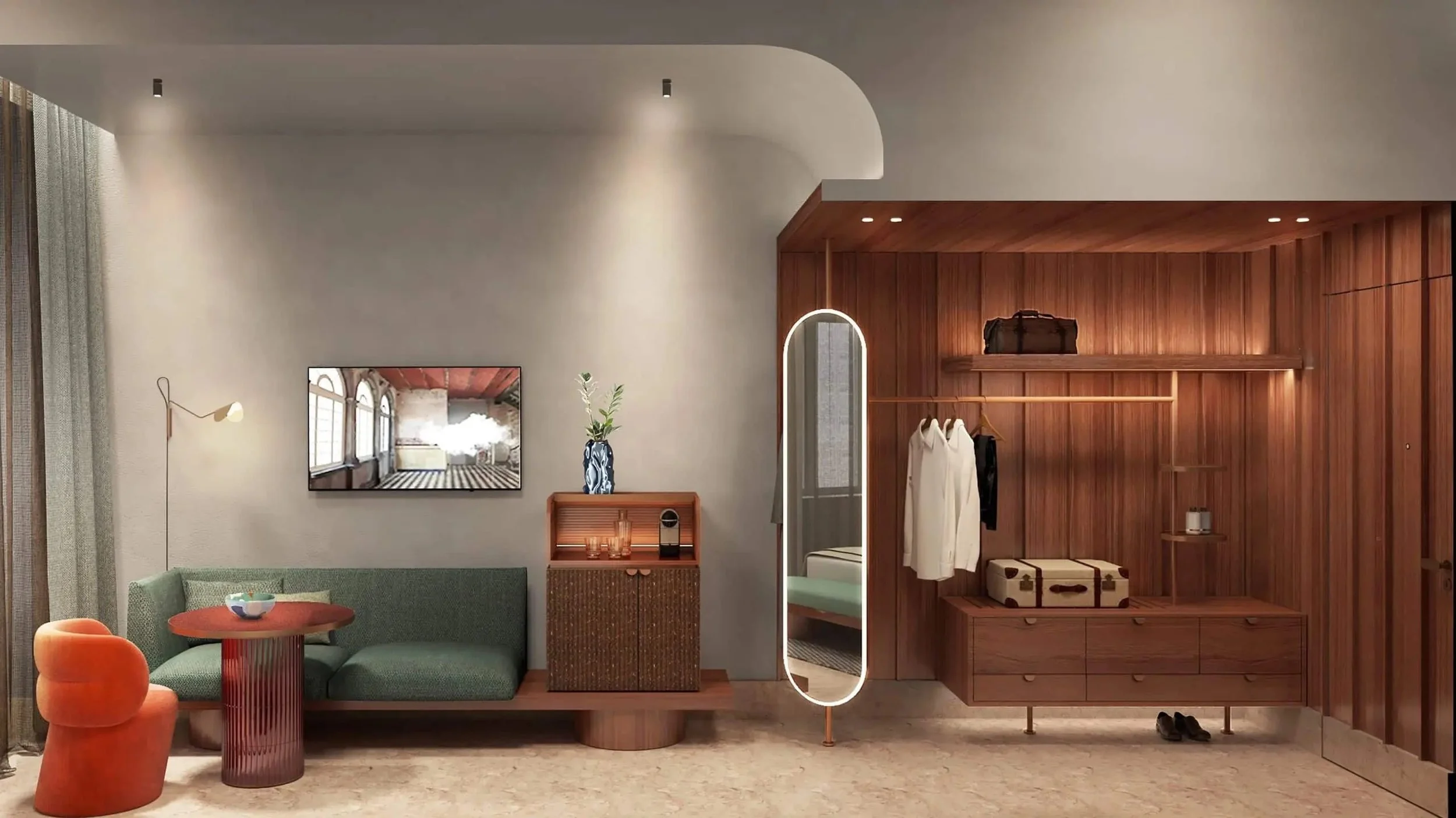 Step into our Junior Suite, where two twin beds and a separate living area create a dynamic space for work and play, designed for a vibrant stay.